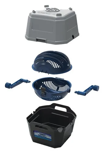 -Includes 2 installed strainers to separate wet media from water