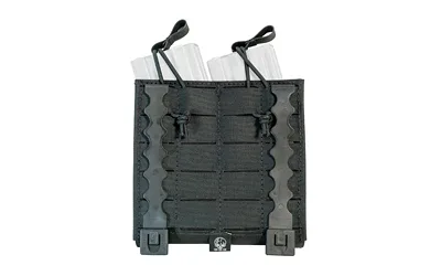Double 5.56 Mag Pouch features open-top design and bungee retention, made from laminate. Attaches to modular webbing using two long MALICE CLIPS (included).