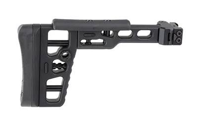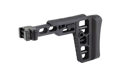 No spiny wheels, no tools needed, just push-button adjustability on the fly – this easily adjustable metal folding stock offers a sleek and powerful solution for those who demand peak performance in tactical scenarios. Made with careful attention to detail, the S.A.S is skeletonized to remove unnecessary bulk, allowing your firearm to have a lean and focused profile without losing operational capabilities. Perfect for anyone who values tactical performance and a clean aesthetic. The folding mechanism provides quick adaptability, letting your firearm turn into a compact powerhouse instantly. The S.A.S delivers an unmatched upgrade to your firearm’s tactical abilities.
